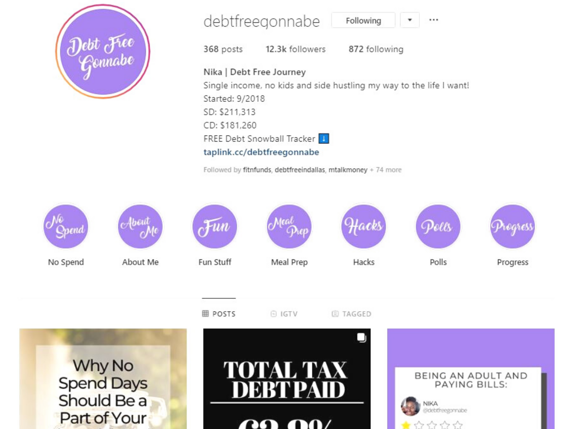 Nika is my Instagram BFF! We share so many similarities when it comes down to debt. She’s chill, hilarious and very easy to talk to.Like myself, she is in the six figure debt club! Her outstanding debt consists of 2 college degrees, credit card debt and IRS debt. To date she has paid off $9,000 of tax debt in 3 months, $18,000 across 12 credit cards. Although she has eliminated items from her budget that don’t really matter, she has made it known that she loves Baseball and will not give it up. She is a PROUD Washington Nationals fan and will quickly let her followers know that! Baseball is an expense that she will NOT eliminate form her budget PERIOD! Check out her page and find out how she is side hustling her way to debt freedom.