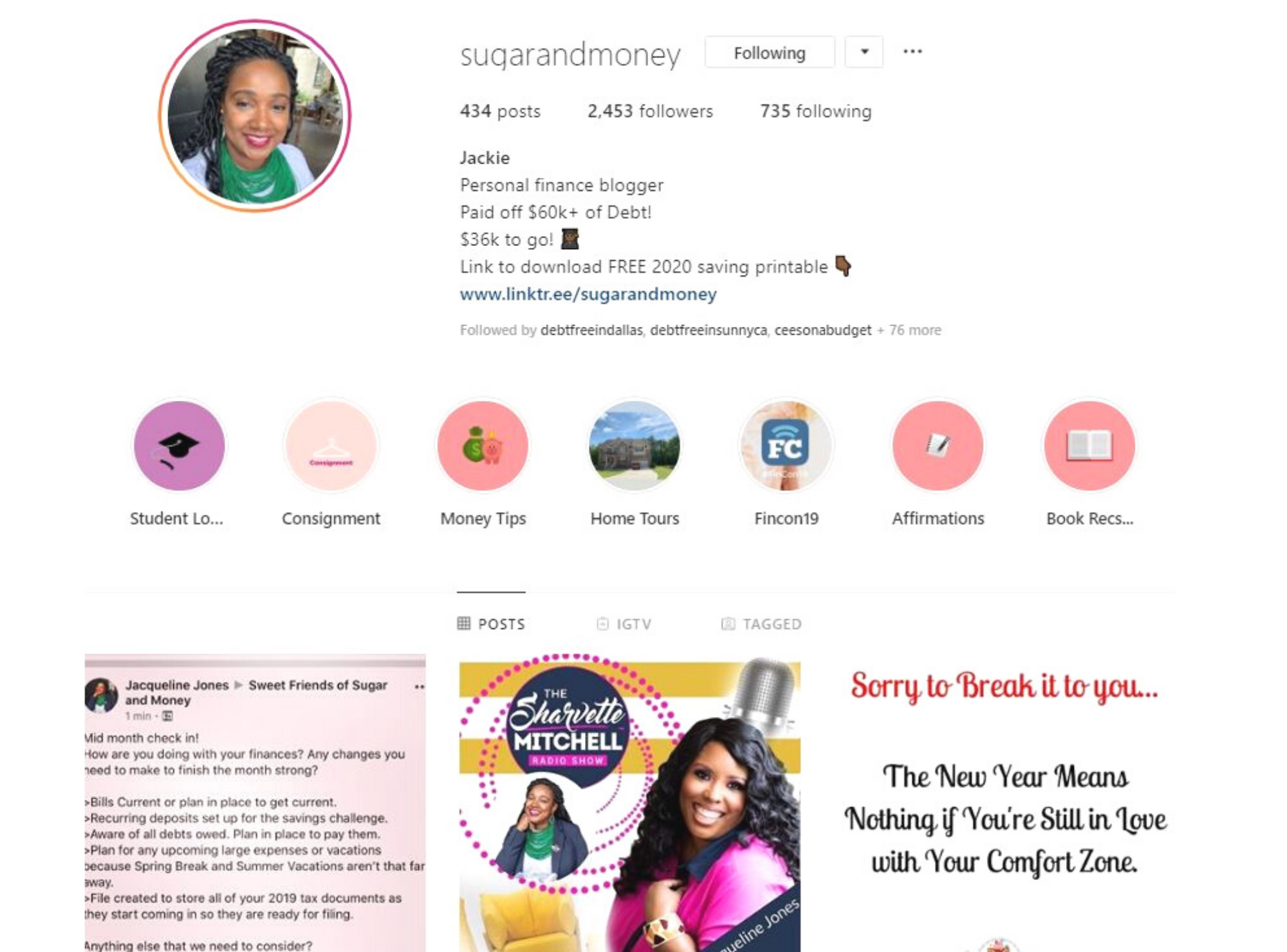 Today, I am sharing 9 IG accounts that are on fire about paying off their debts and getting their money straight. These ladies are the bomb dot com. These ladies aren’t just talking the talk. Each of them have been down that long road of outstanding debt so they know what it’s like to have little or no money in the bank, live paycheck to paycheck and wonder when or how they’ll make ends meet.