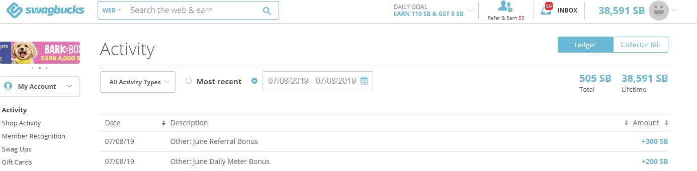 There are so many ways to earn SB’s on their site, you should always walk away with something.